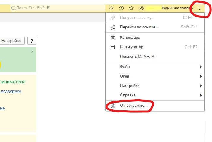 - Нажмите на кнопку меню (две черты и стрелка вниз) вверху справа, и там в конце списка – О программе.