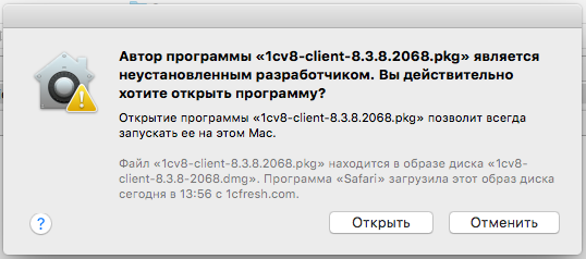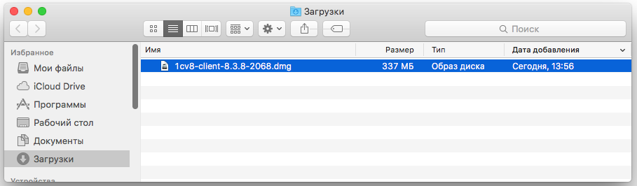 - Вверху окна есть номер версии платформы 1С:Предприятие – выбирайте тонкий клиент Mac OS с таким же номером.