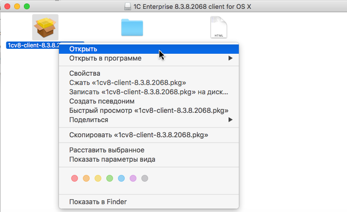 В появившемся списке того, что в него входит, выберите файл с расширением .pkg – это установочный файл, и нажмите на него правой кнопкой мыши (или левой с нажатым Ctrl).