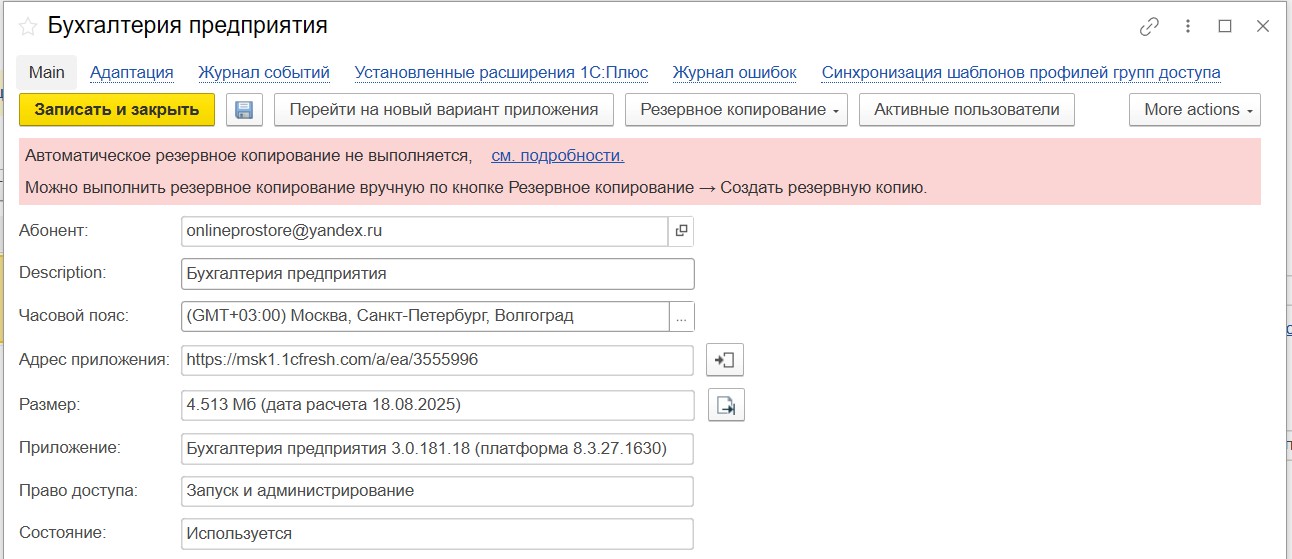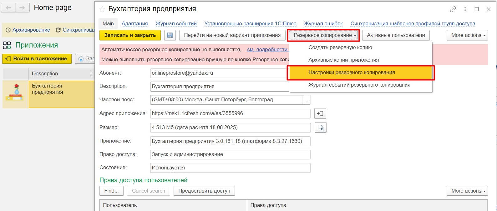 В тестовом тарифе автоматическое копирование может отключаться – система выдаст об этом предупреждение в карточке приложения.