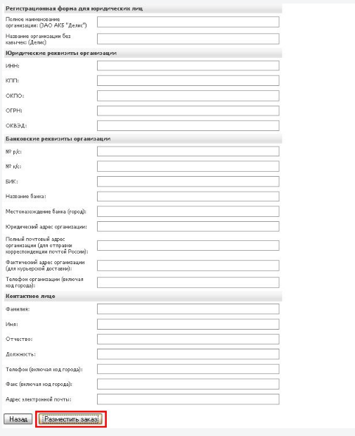 Заполните все реквизиты вашей организации, на которую вы оформляете лицензию, и подтвердите, что хотите Разместить заказ.