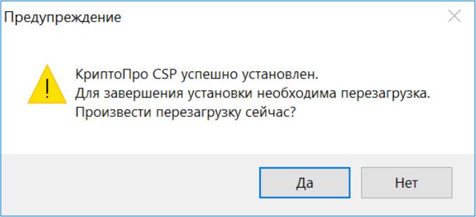 Чтобы криптопровайдер начал работу, перезагрузьте компьютер.