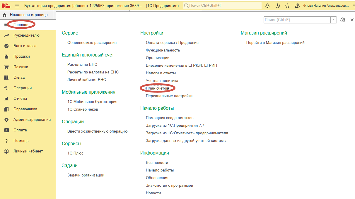 - В открывшемся подразделе найдите и щелкните по ссылке «План счетов».