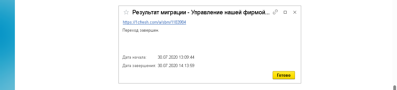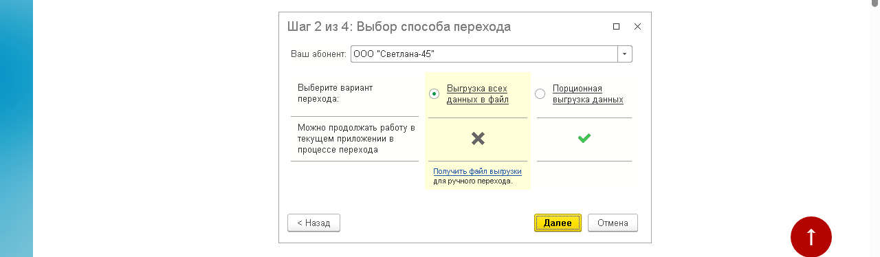 - Порционная выгрузка данных. Этот метод более гибкий, но доступен только если версия вашей конфигурации в точности совпадает с версией, используемой в облаке. Его главное преимущество — возможность начать в новом ПО, не прерывая работу пользователей. Монопольный режим потребуется только на самоСистема предложит два основных способа, как осуществить переход в 1С Фреш:м последнем этапе для завершения переноса.