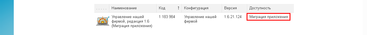 - Созданное приложение появится в списке сразу после начала миграции. В колонке Доступность будет указан статус: Миграция приложения.