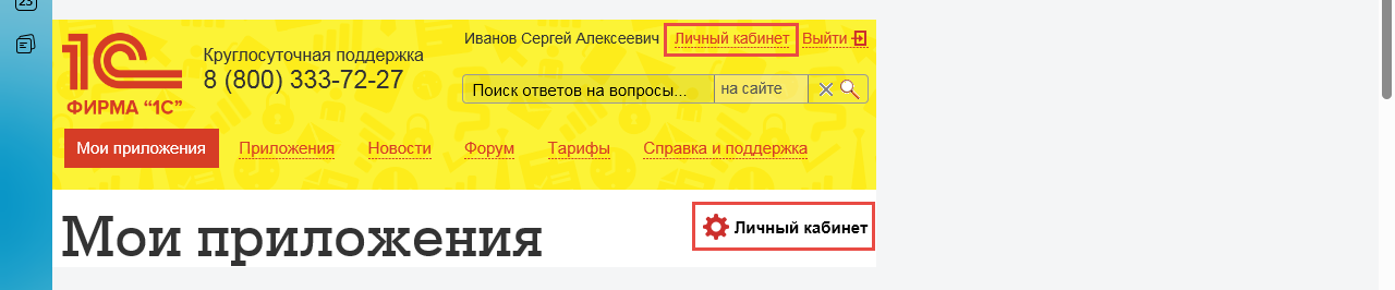 - Авторизация в системе. Выполните вход в персональный кабинет на портале сервисов 1С (доступ часто осуществляется через раздел «Мои приложения»).