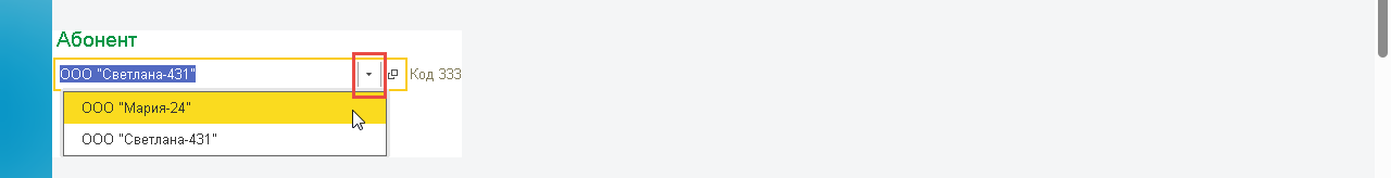 - Идентификация абонента. При управлении несколькими юридическими лицами требуется выбрать нужного абонента: