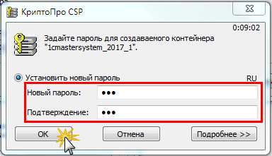 Далее система попросит придумать пароль — введите его, повторите в поле для подтверждения и снова нажмите ОК.