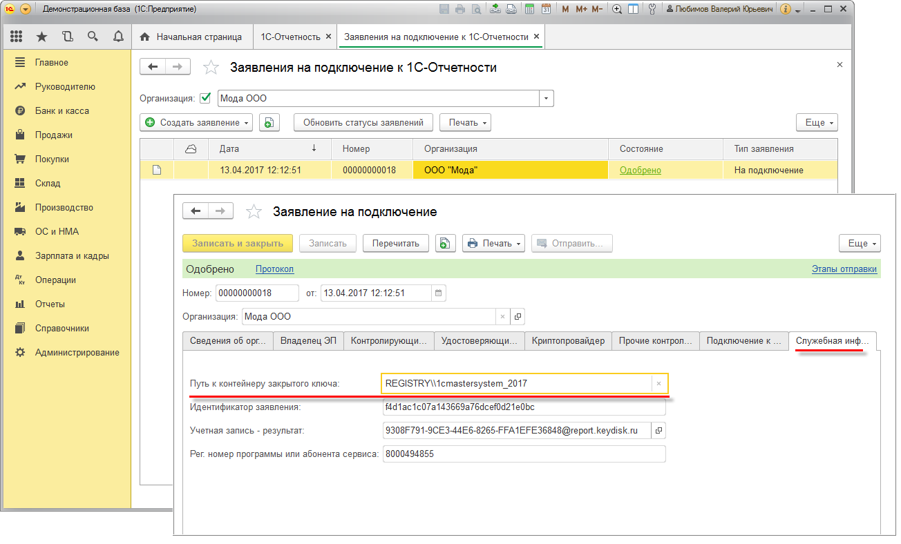 Процедура зависит от того, создается ли копия на том устройстве, где формировалось заявление на подключение к 1С-Отчетность, или на другом. В первом случае вы сможете найти ключ. Для этого: