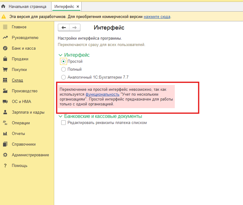 Если вы пользуетесь какими либо из таких функций, система не сможет перейти на Простой интерфейс.