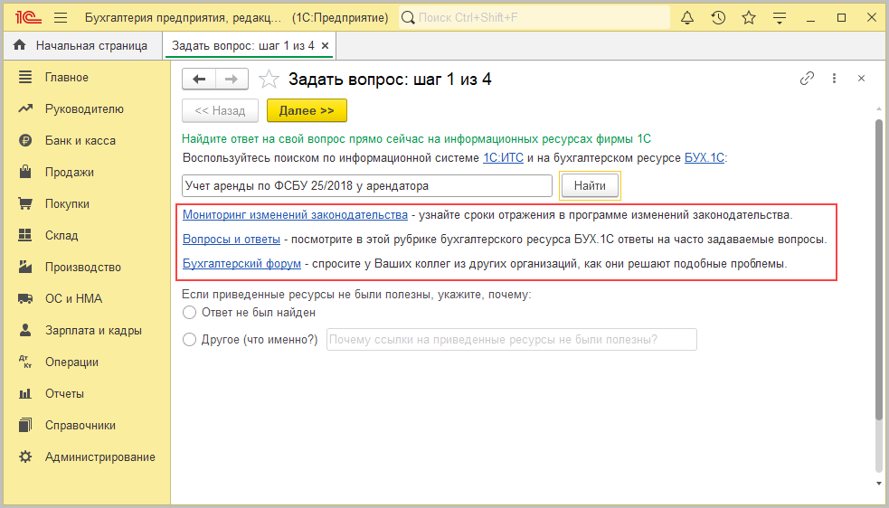 Если найденные материалы не полностью раскрывают ваш вопрос, можно обратиться к другим разделам системы 1С:ИТС: