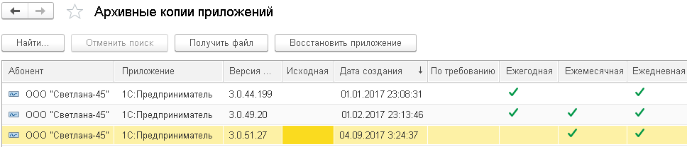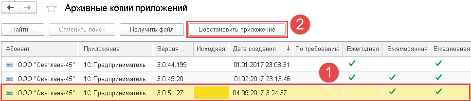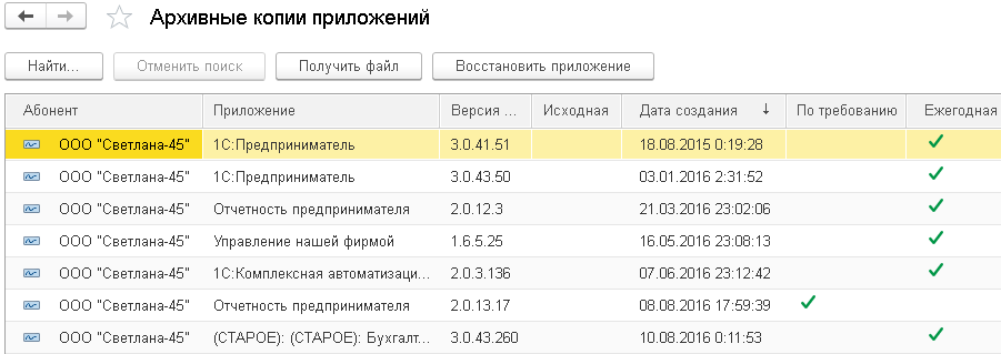 Если приложение было ошибочно удалено, требуется доступ к более раннему периоду, который в актуальной версии был изменен, и в некоторых других случаях может потребоваться восстановить (создать) приложение из резервной копии, которые можно делать в автоматизированном режиме по графику (ежедневно, еженедельно, по итогам месяца и года, количество и сроки хранения каждого вида отличаются) или вручную. Права на эти действия есть у владельца абонента – рассказываем, как именно это делается.